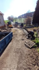 - Příprava na položení odvodňovacích žlabů a dešťový